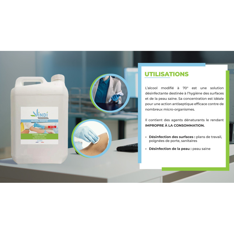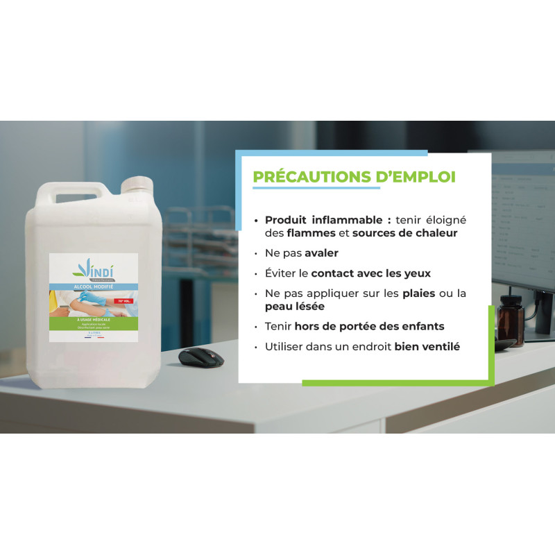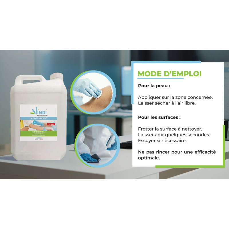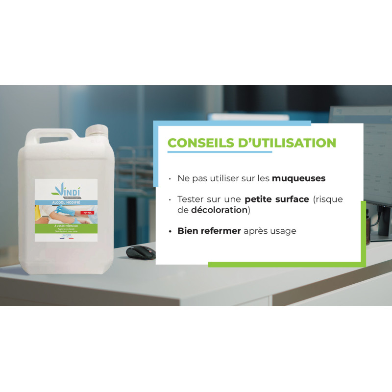 L’alcool est excellent antiseptique et désinfectant. L’activité biocide est très importante « contre les bactéries - les virus – les champignons ». Produit de qualité médicale. Tarifs attractifs et dégressifs. Prix adapté aux revendeurs médicaux. Produit de qualité médicale. Vindi Désinfectant, n°1 sur la qualité. Une gamme complète de produits à destination de la profession médicale qui répondra à toutes vos attentes. Livraison gratuite en 24/48h en France et dans toute l’Europe.