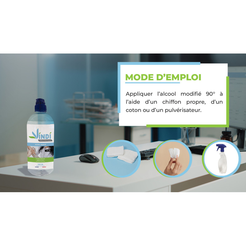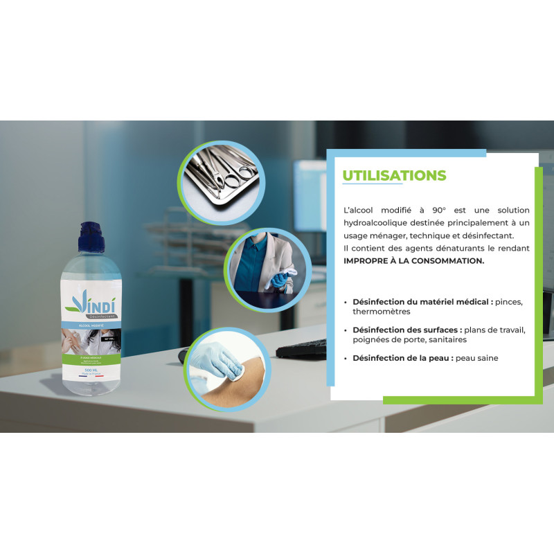 Alcool modifié 90 peut-être utiliser pour nettoyer et désinfecter surfaces et matériels inox et médicaux.