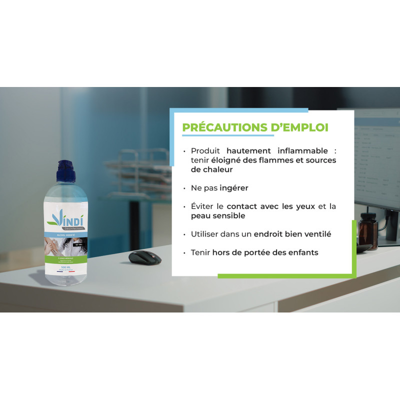 L’alcool est excellent antiseptique et désinfectant. L’activité biocide est très importante « contre les bactéries - les virus – les champignons ». Produit de qualité médicale. Tarifs attractifs et dégressifs. Prix adapté aux revendeurs médicaux. Produit de qualité médicale. Vindi Désinfectant, n°1 sur la qualité. Une gamme complète de produits à destination de la profession médicale qui répondra à toutes vos attentes. Livraison gratuite en 24/48h en France et dans toute l’Europe.