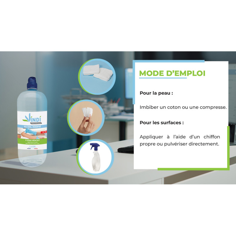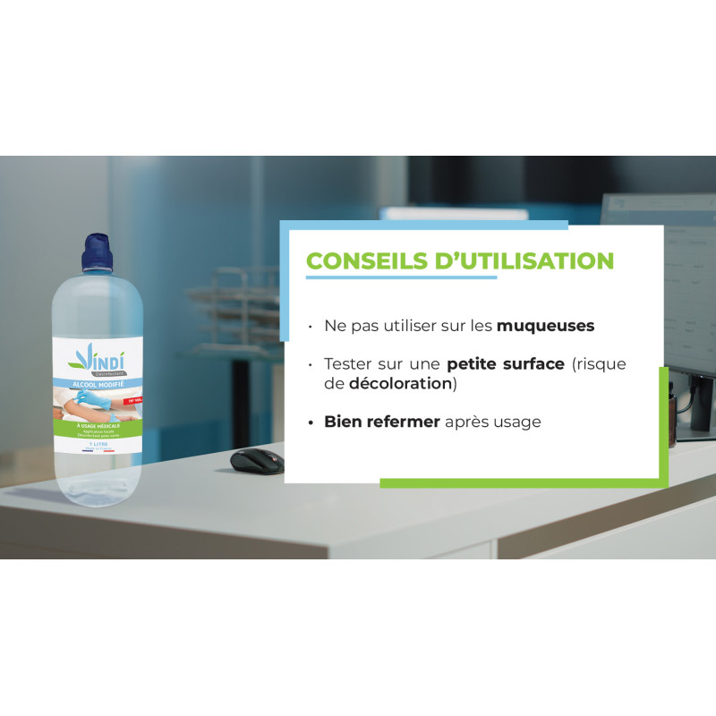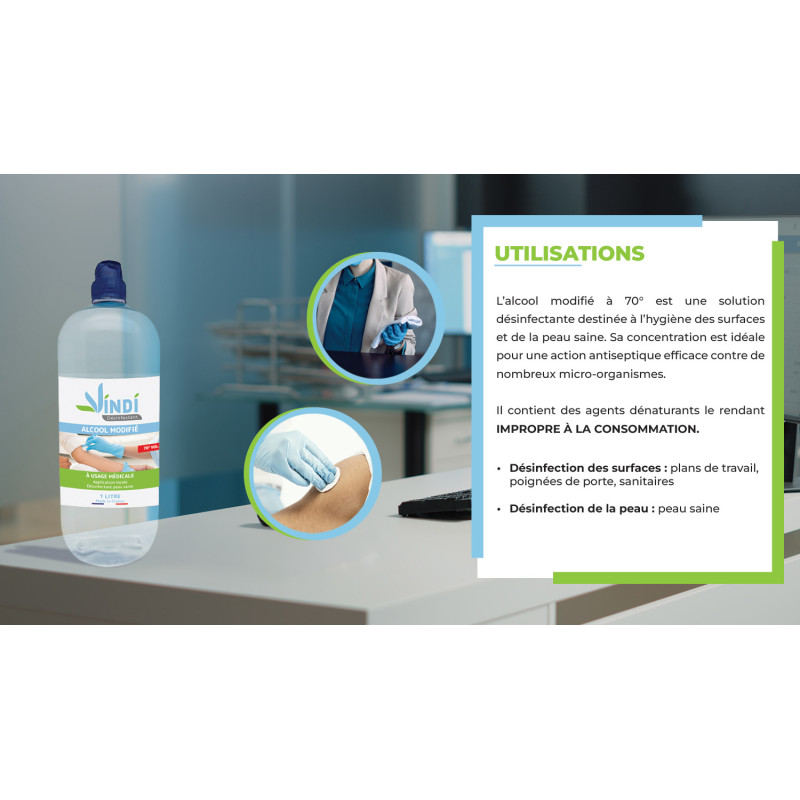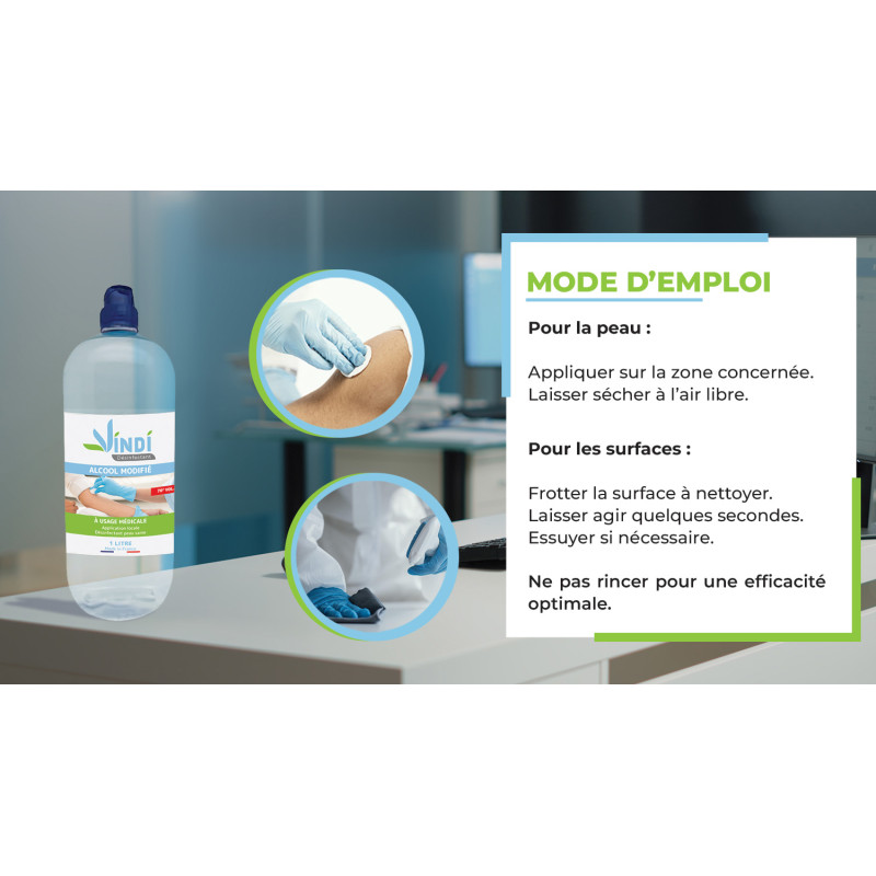 L’alcool est excellent antiseptique et désinfectant. L’activité biocide est très importante « contre les bactéries - les virus – les champignons ». Produit de qualité médicale. Tarifs attractifs et dégressifs. Prix adapté aux revendeurs médicaux. Produit de qualité médicale. Vindi Désinfectant, n°1 sur la qualité. Une gamme complète de produits à destination de la profession médicale qui répondra à toutes vos attentes. Livraison gratuite en 24/48h en France et dans toute l’Europe.