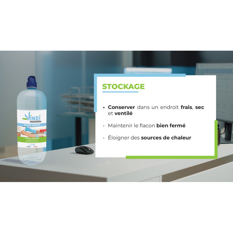 VINDI-AL70° : lotion défection peau saine CONSERVATION AVANT OUVERTURE : Stockage +5° à + 25° : 2 ans à partir de la date de réalisation. CONSERVATION APRES OUVERTURE : VINDI-AL70° est une lotion désinfectante qui se conserve 3 mois après ouverture. | ![]() |