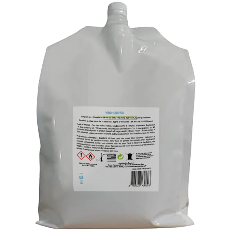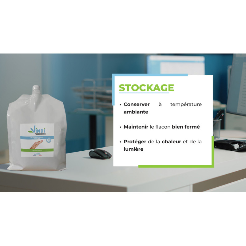 VINDI-GHA 10 : Gel hydroalcoolique. CONSERVATION AVANT OUVERTURE Stockage +5°C à +25°C : 2 ans à partir de la date de réalisation. CONSERVATION APRES OUVERTURE VINDI-GHA 10 est un gel hydroalcoolique qui se conserve 3 mois après ouverture. | ![]() |