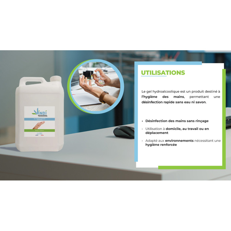 Le gel hydroalcoolique a des propriétés bactéricides, virucides et fongicides, sans effet nettoyant. Elles doivent être appliquées sur des mains sèches et non souillées.
