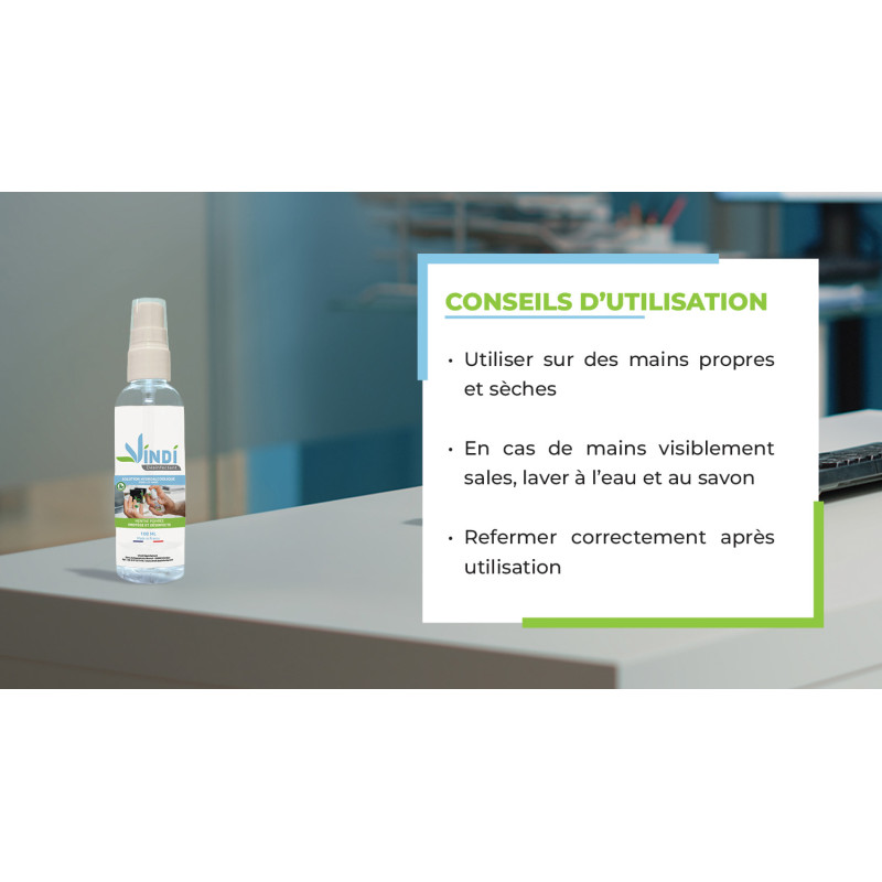 Les solutions hydroalcooliques ont des propriétés bactéricides, virucides et fongicides, sans effet nettoyant. Elles doivent être appliquées sur des mains sèches et non souillées.