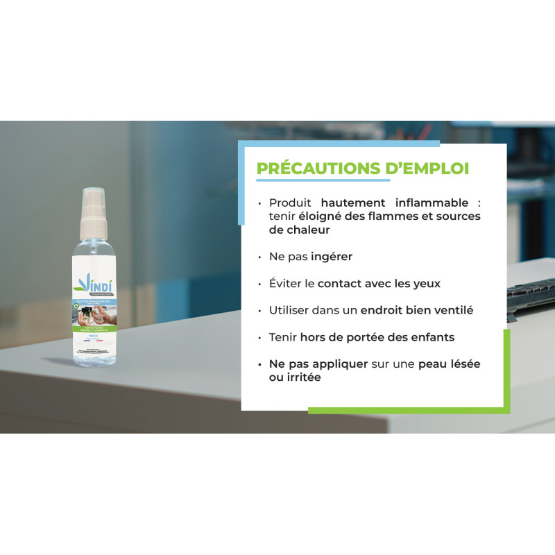DANGER Utiliser dans des zones bien ventilées. H225: Liquide et vapeurs très inflammables. H319: Provoque une sévère irritation des yeux. Tenir à l’écart de la chaleur, des sources chaudes, des étincelles et des flammes nues et toutes autre source d’inflammation. Maintenir le récipient fermé de manière étanche. Tenir hors de portée des enfants. Pour application cutanée uniquement. Eviter tout contact avec les yeux. Produit biocide destiné à l’hygiène humaine (Groupe1-TP1).