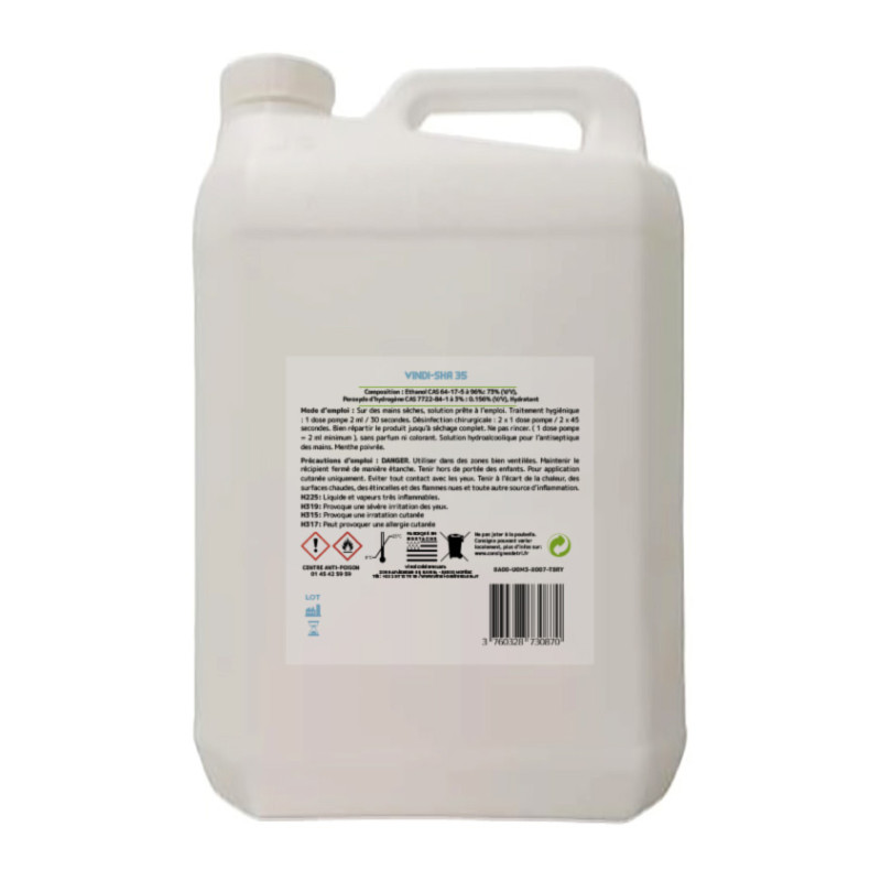 VINDI-SHA 30 : Solution hydroalcoolique. CONSERVATION AVANT OUVERTURE Stockage +5°C à +25°C : 2 ans à partir de la date de réalisation. CONSERVATION APRES OUVERTURE VINDI-SHA 30 est une solution hydroalcoolique qui se conserve 3 mois après ouverture. | ![]() |