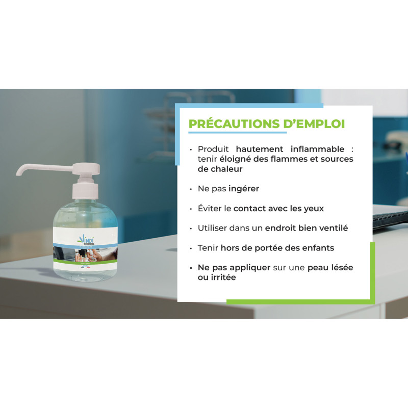 DANGER Utiliser dans des zones bien ventilées. H225: Liquide et vapeurs très inflammables. H319: Provoque une sévère irritation des yeux. Tenir à l’écart de la chaleur, des sources chaudes, des étincelles et des flammes nues et toutes autre source d’inflammation. Maintenir le récipient fermé de manière étanche. Tenir hors de portée des enfants. Pour application cutanée uniquement. Eviter tout contact avec les yeux. Produit biocide destiné à l’hygiène humaine (Groupe1-TP1).