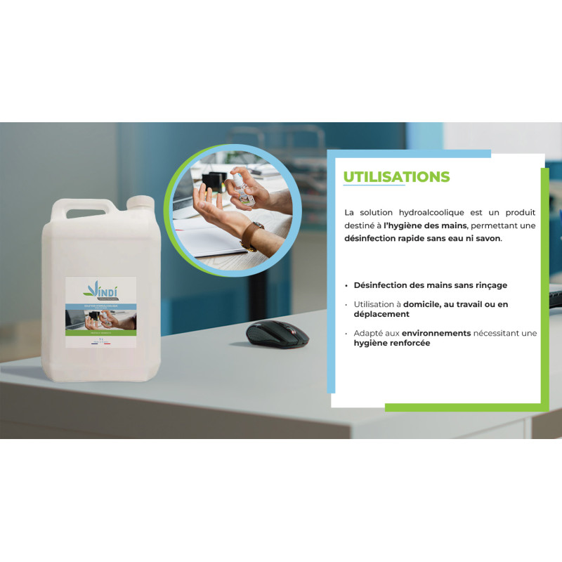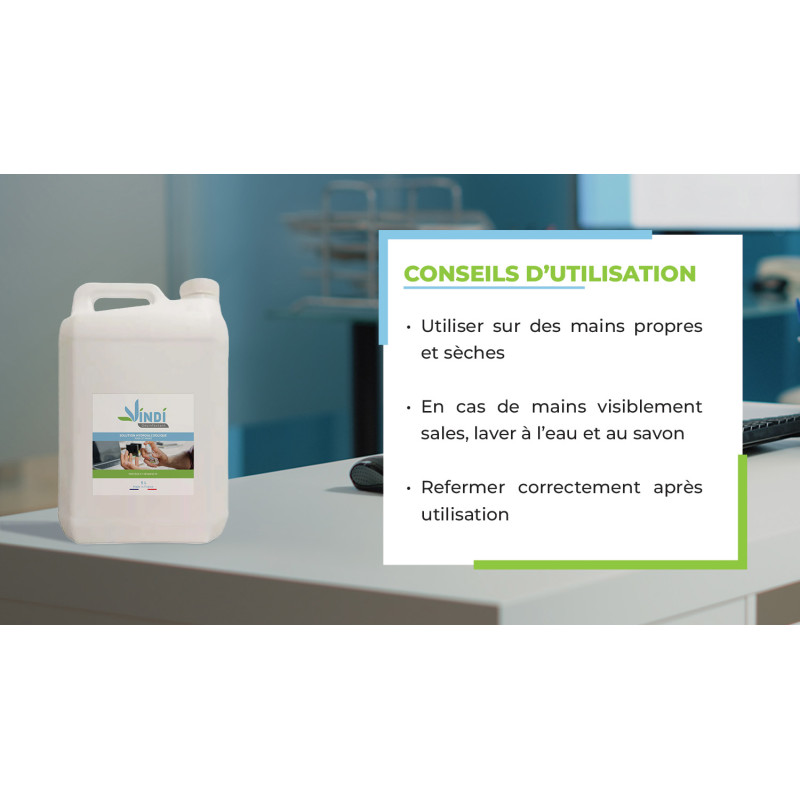 Les solutions hydroalcooliques ont des propriétés bactéricides, virucides et fongicides, sans effet nettoyant. Elles doivent être appliquées sur des mains sèches et non souillées.