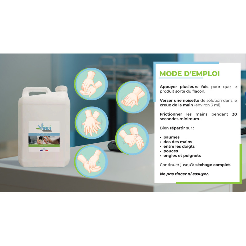 Les solutions hydroalcooliques ont des propriétés bactéricides, virucides et fongicides, sans effet nettoyant. Elles doivent être appliquées sur des mains sèches et non souillées.